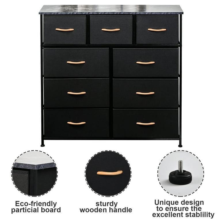 Cerbior 9 Drawer Dresser For Bedroom Tall Fabric Dresser Storage Tower Cabinet Bin Storage Organizer For Living Room Kids Room Black Walmart Com